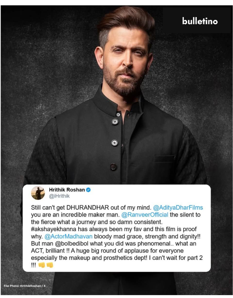 रितिक रोशन ने धुरंधर को 'सर्वोत्तम सिनेमा' कहा