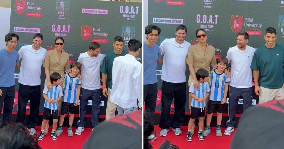 करीना कपूर खान ने इस खास पल से पहले सोशल मीडिया पर एक तस्वीर साझा की, जिससे प्रशंसकों को लियोनेल मेस्सी से मिलने को लेकर परिवार की खुशी की झलक मिली। तस्वीर में करीना फुटबॉल के दिग्गज खिलाड़ी से मिलने से कुछ ही क्षण पहले अपने बेटों को कमरे से बाहर ले जाती हुई दिखाई दे रही हैं।